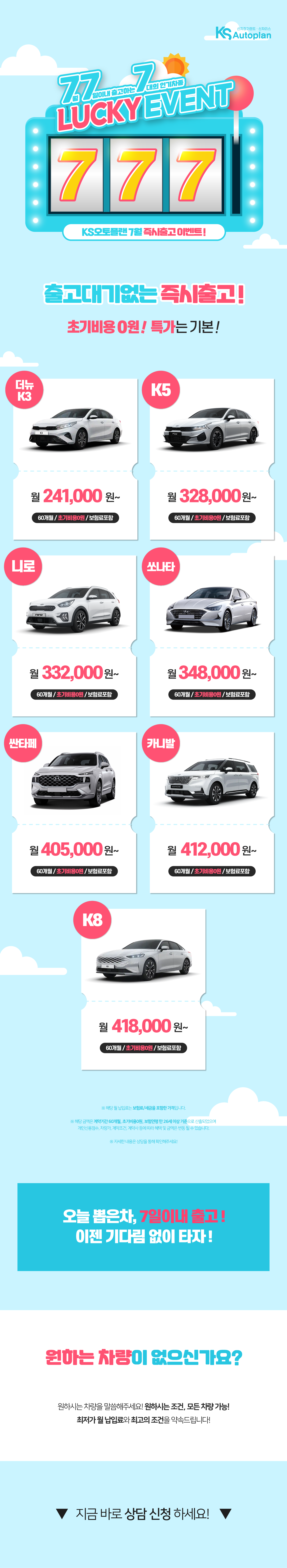 777럭키 이벤트! 7월 7일이내 출고하는 7대의 인기차종!