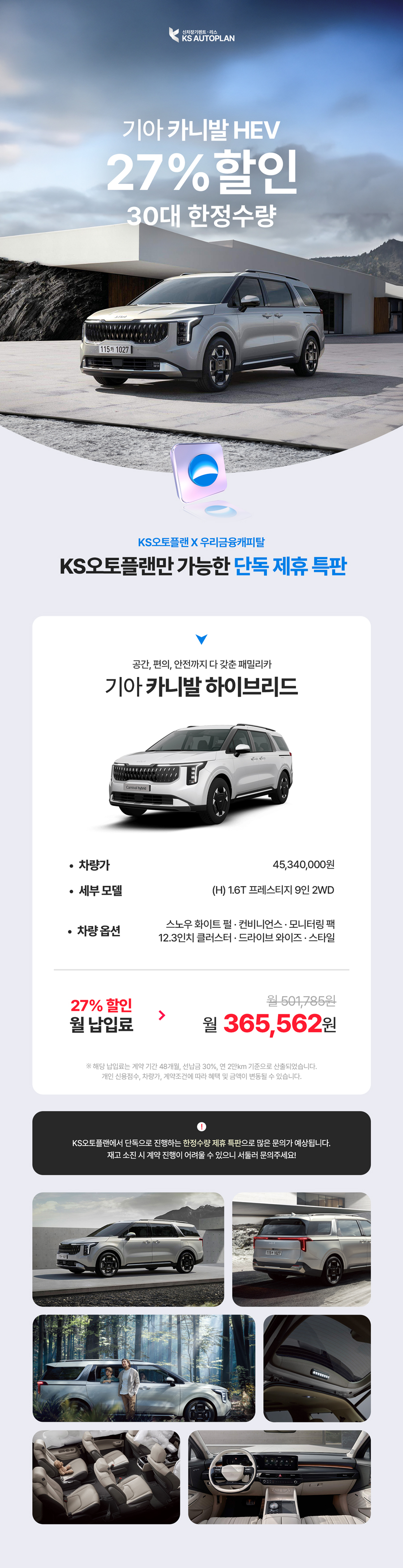 [기아 카니발 HEV] KS오토플랜 X 우리금융캐피탈 제휴 특판
