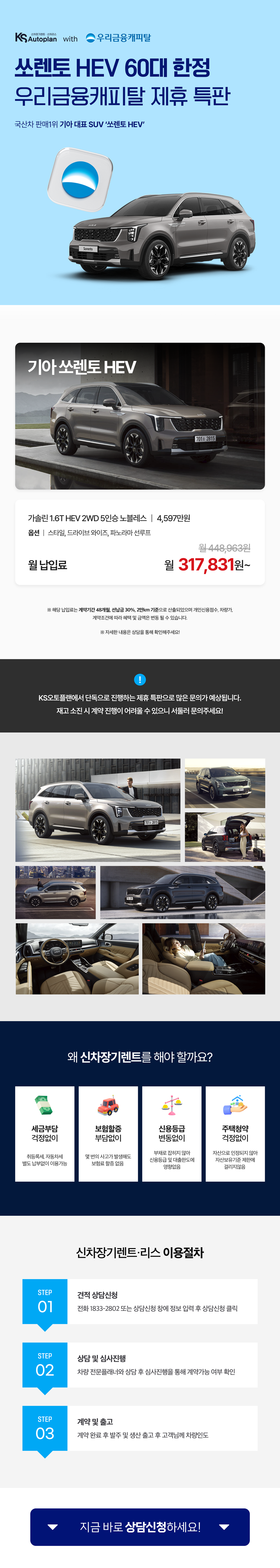 [기아 쏘렌토 HEV] KS오토플랜 x 우리금융캐피탈 제휴 특판